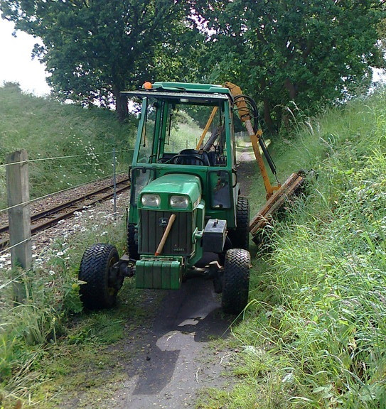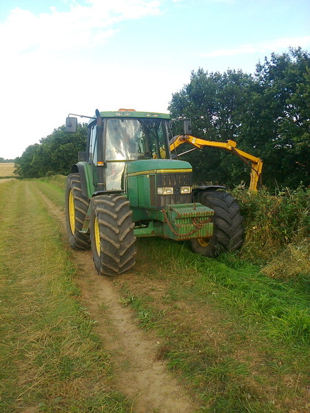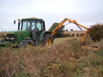 In the pictures shown above is a john deere 955 with a McConnel a side arm flail reaching 3 metres, but narrow enough to work around fences and trees.