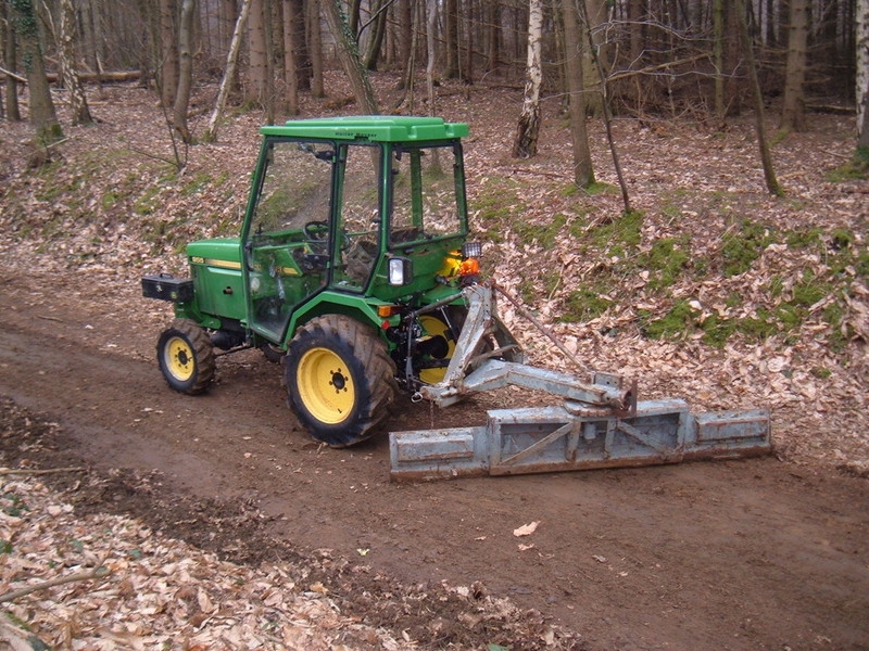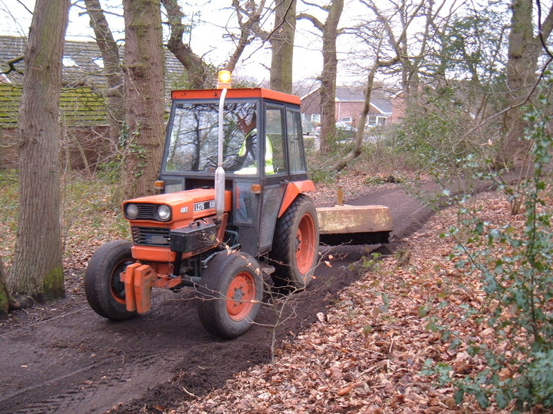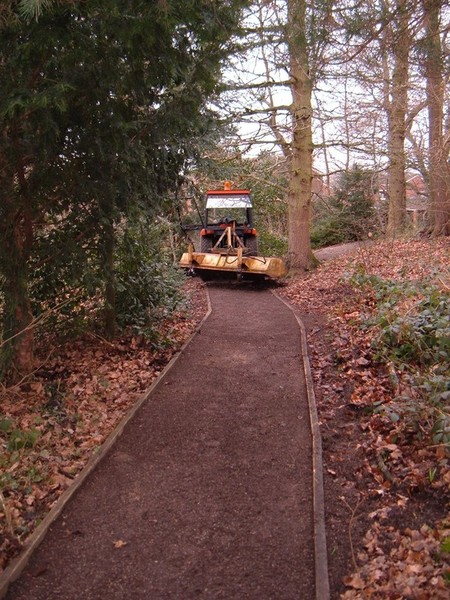 In the pictures above the machine that is being used is a john deere 955 with a grading blade, we use this grading blade for the removal of leaves and mud from footpaths, but also used to level off unevan pathways.