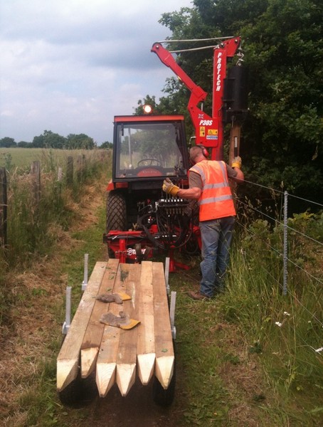 In the pictures above the machine that is being used is a kubota tractor and the protech p30s post knocker, the 6 leaver hydraulic actions allows for specific adjustments so all posts can be knocked in whatever the ground conditions is.